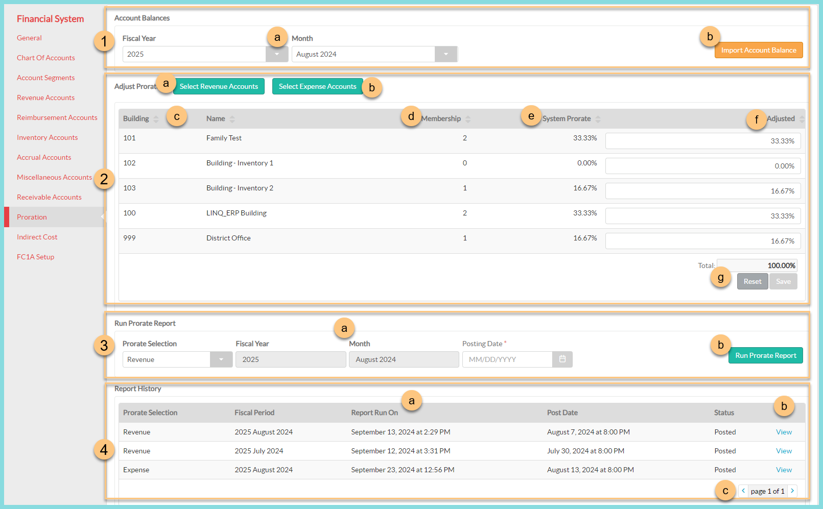Financial Systems Proration Tab
