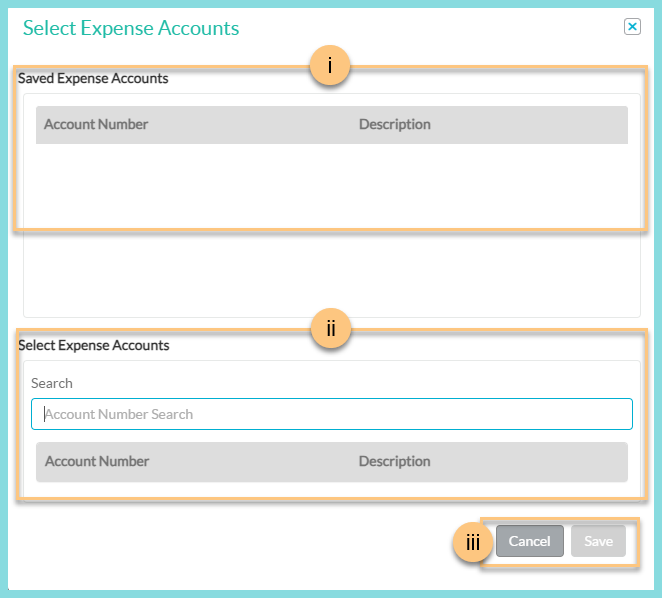 3. Click Save to save your select accounts as expense accounts. Click Cancel to close the modal.