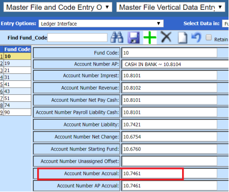 Add Accrual Account to the Ledger Interface. After creating the balance sheet account, add the accounts to the corresponding fund(s) record in the Ledger Interface.