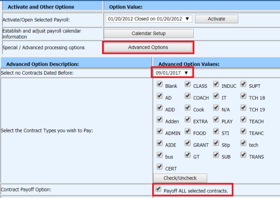 Determine Advanced Options Settings for Contract Payout. Select “Advanced Options.”