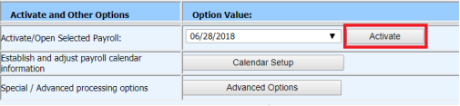Open Accrual Payroll: Once all the items on the “Activate/Open a Payroll” screen have been set up, select the “Activate” button.