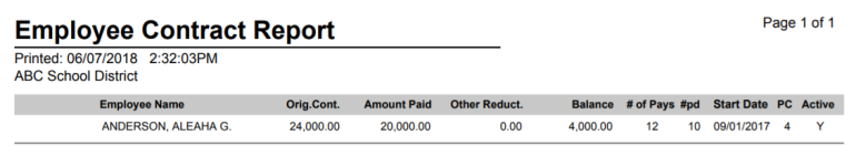 Employee Open Contract Report. This report is in the “Employee Master and Attendance” report group. This report will show you the amount of the open contracts for each employee. From this report, you will be able to determine the contracts you want to include in the payroll accrual process.