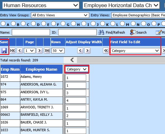 A field needs to be selected that can be used to sort employees. For this example the field “Category” is going to be used. NOTE: Any field in the Employee Demographics All Fields view can be used to setup a sort. The field you select depends on what you are using them for so select one that will work for you.