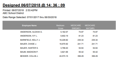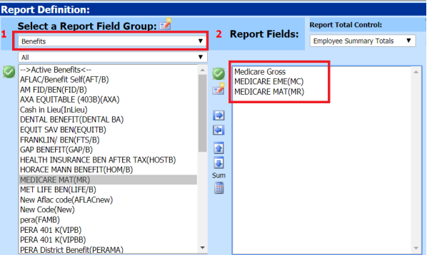 A second example of a report would be to select one of the gross codes and then the benefits and deductions that are calculated from that gross code. For this example, I will be using the Medicare gross and select the codes that are used in this calculation process. From this example, you will be able to see you can do the same thing with any of the other gross codes and the deduction and benefits that are calculated from that gross code.