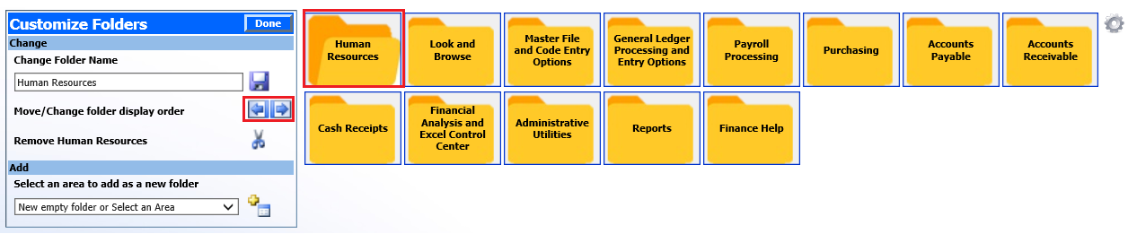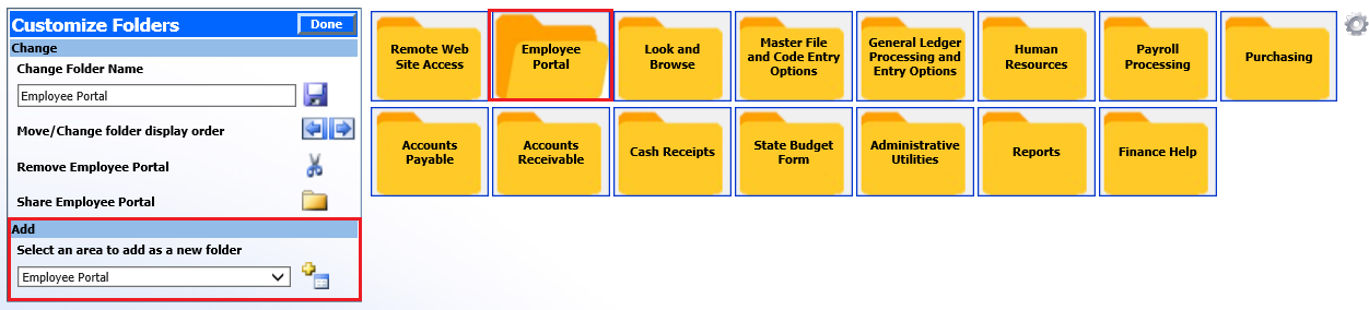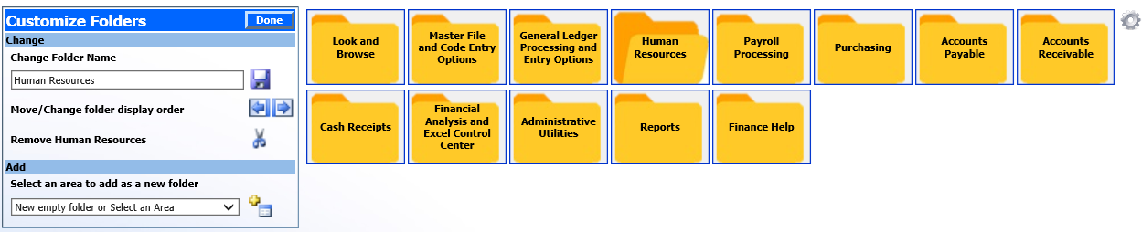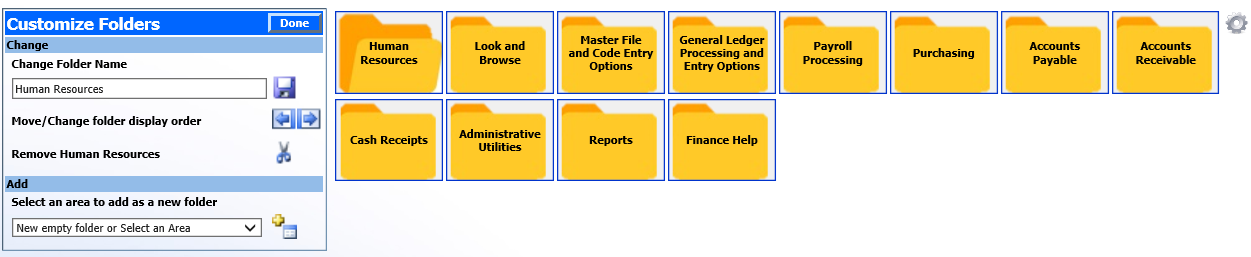 Select “Done” when completed with customizing the folders
