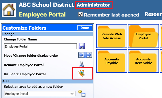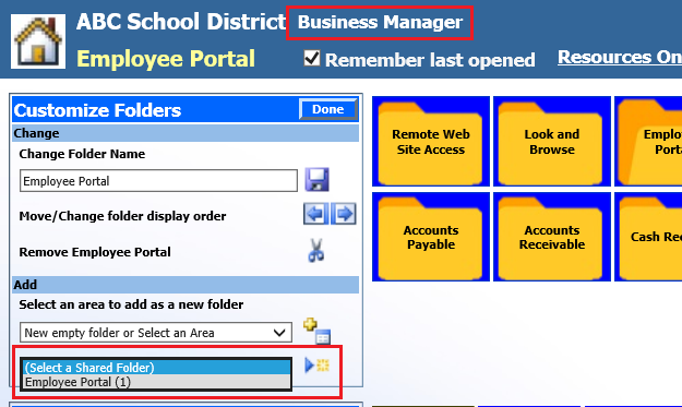 Select “Done” when completed with customizing the folders.