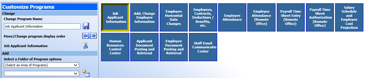 Change: Change Program Name, Move/Change Program display order, Remove Program from the selection choices