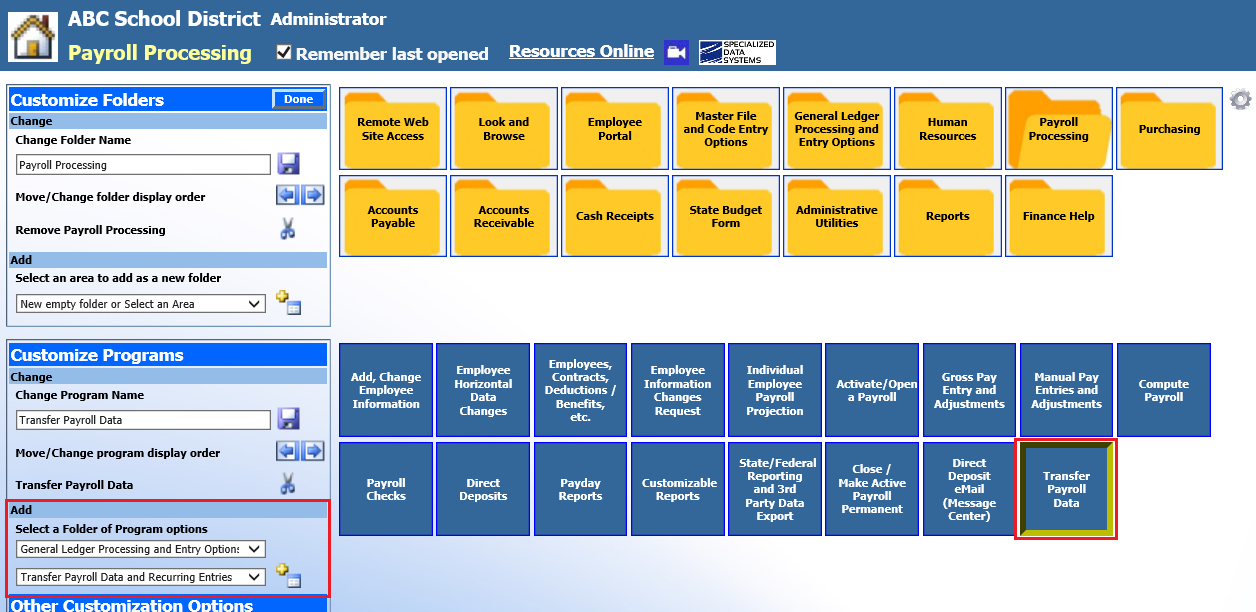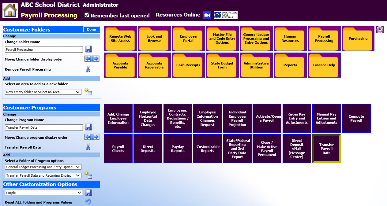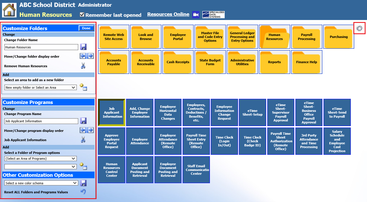 Follow these procedures to customize folders and program to fit your individual needs