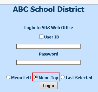 There are two menu options on this login screen — the Menu Left and Menu Top.