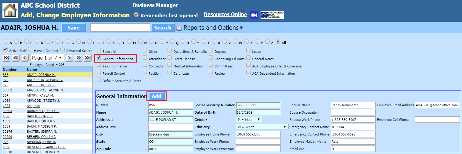 Add, Change Employee Information |
