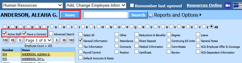 After any changes are made to the Employee record, select Save. A time stamp will display.