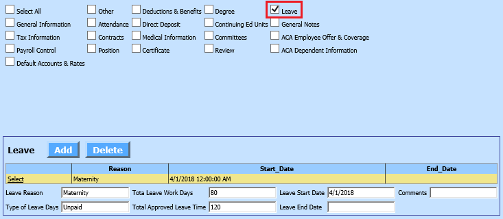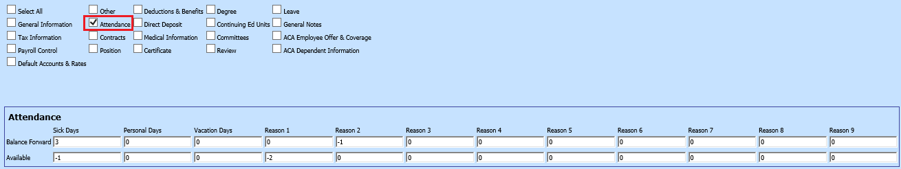 The Attendance option allows you to enter in the Employee Attendance totals.