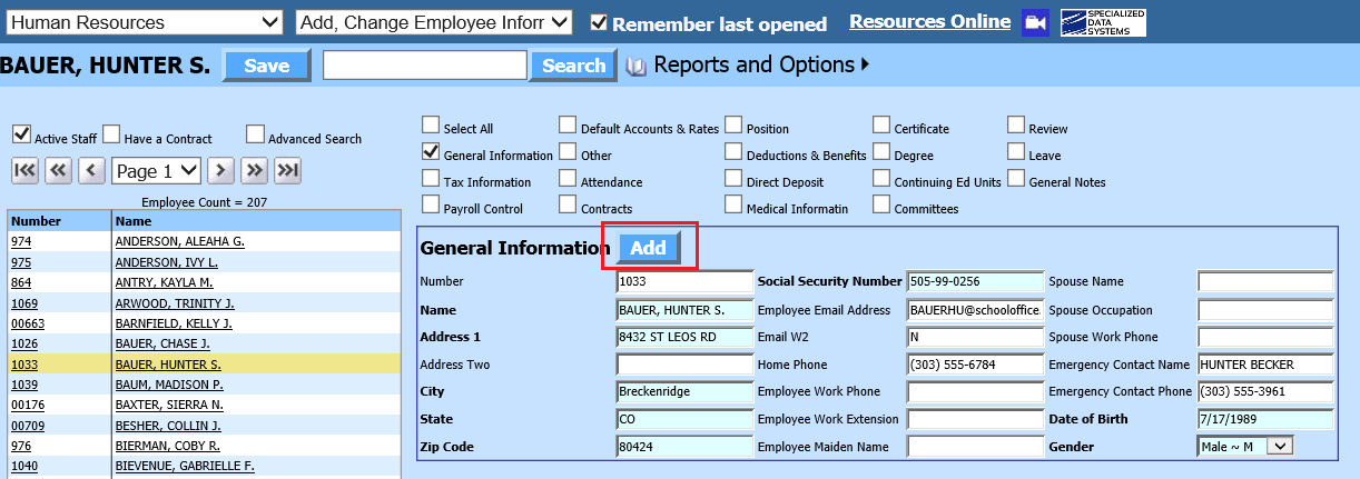 See following link for additional information on adding employee demographic information: http://help.schooloffice.com/financehelp/#!Documents/enteringanemployeetaxinformation.htm