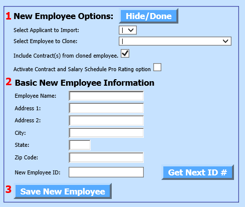 Select an employee, from the field ‘Select Employee to Clone” drop down list to use the cloning option. This should be an employee close to the type of employee you are adding.