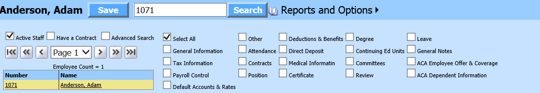 Check mark if you wish to view only Active Staff, uncheck to view all Staff (Inactive and Active).