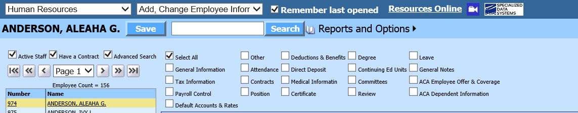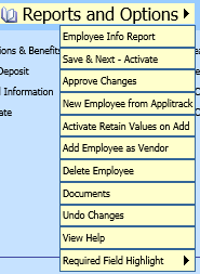 Note: The fields highlighted are the fields needed for State reporting requirements. You can adjust the brightness of the highlighted field by selecting “Reports and Options” and selecting “Required Field Highlight”, then select “Light Background” or “Bright Background”