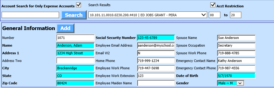 See following link for additional information on adding employee demographic information: http://help.schooloffice.com/financehelp/#!Documents/enteringanemployeedefaultaccountsrates.htm