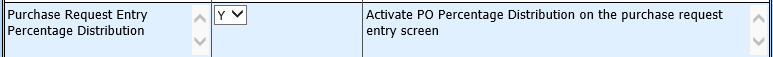 Under the Purchasing heading, Activate PO Percentage Distribution; select “Y”
