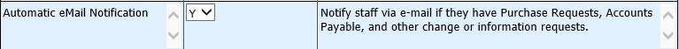 If you wish for the Users to receive e-mail notifications; i.e. there is something to approve, the PO has been approved, etc. To activate this option: